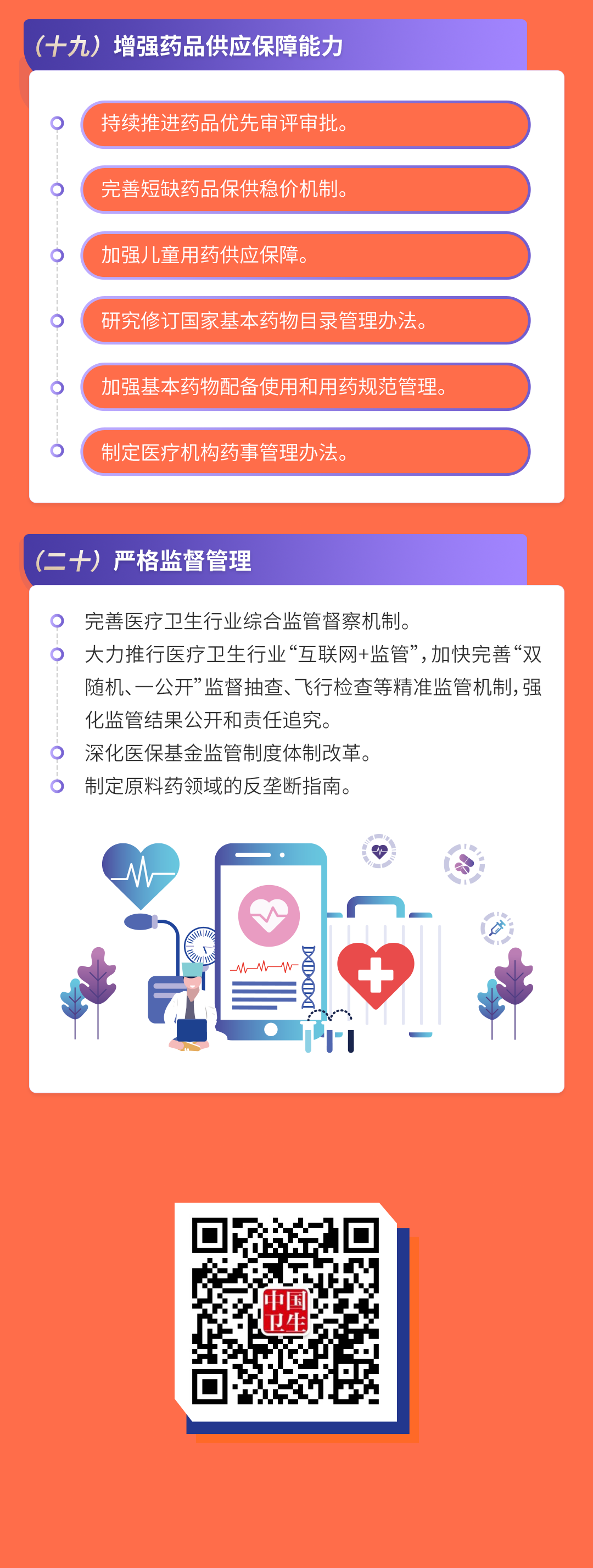 (二十)严格监督管理。完善医疗卫生行业综合监管督察机制。大力推行医疗卫生行业“互联网+监管”,加快完善“双随机、一公开”监督抽查、飞行检查等精准监管机制,强化监管结果公开和责任追究。深化医保基金监管制度体系改革,推进医保智能监控示范点建设。制定原料药领域的反垄断指南。(国家卫生健康委、国家疾控局、市场监管总局、国家医保局、国家中医药局等按职责分工负责)