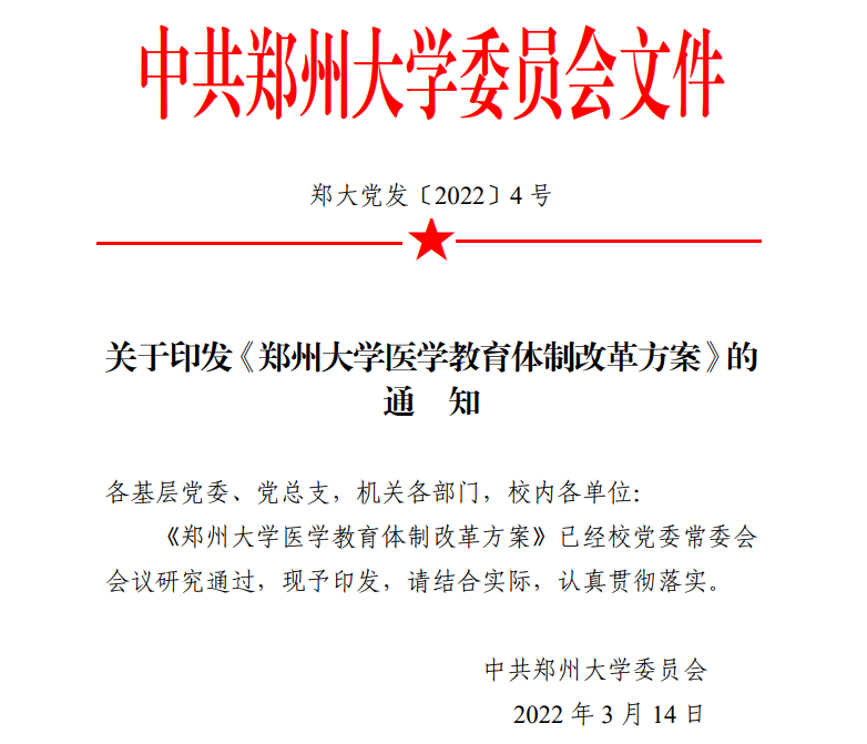 一份名为《郑州大学医学教育体制改革方案》(简称《改革方案》)的文件在网上流传,“医学界智库”经多方核实,确认了文件的真实性。